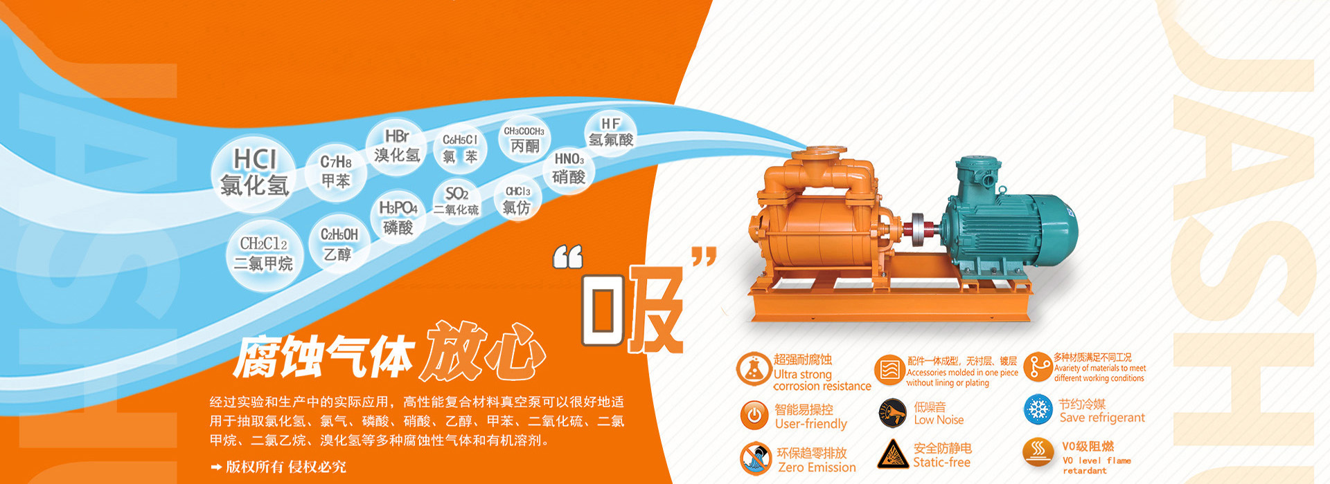 淄博華舜耐腐蝕真空泵有限公司主要生產(chǎn)各種型號和規(guī)格的水噴射泵、耐酸泵、耐酸真空泵等產(chǎn)品,是一家集科研開發(fā)、設(shè)計咨詢、生產(chǎn)、銷售、服務(wù)于一體,利用新型高性能復(fù)合材料,專業(yè)生產(chǎn)耐腐蝕液環(huán)真空泵的國家高新技術(shù)企業(yè), 坐落于“中國泵業(yè)名城”---山東省淄博市博山區(qū),公司通過了ISO9001質(zhì)量體系認(rèn)證。公司獨立研發(fā)的具有多項自主知識產(chǎn)權(quán)的專利產(chǎn)品-耐腐蝕系列水環(huán)式真空泵,通過了省級科技成果鑒定,處于“國際先進水平”。 產(chǎn)品過流部件采用三大系列高性能復(fù)合材料(HS-V130、HS-V110、HS-V80)一體成型,耐腐蝕范圍廣、無襯層不脫落、節(jié)能效率高、運行可靠、環(huán)保節(jié)水、 體積小、重量輕、使用壽命長等特點。